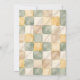 A sweet baby shower invitation that is gender neutral. This invitation features a baby sitting with their puppy dog in a patch of grass and flowers. The color scheme is soft hues of sage green, yellow, beige and light brown. The back is a patchwork quilt in soft tones.
