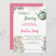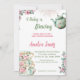 Mall för inbjudan att bjuda in elegant mynta grönt och rosa babydusch-tefest. Inbjudan att duscha tekrukor och tekrukor.