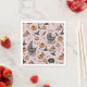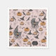 En handdragen Halloween-mönster från "A Baby is Brewing"-duschsamlingen för barn, illustrerad i svart bläck. Har ett mönster med en antika baby-vagn, svart kråka och pumpor på rosa.