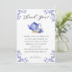Lila Tea Party Baby Shower Tack för att du har ett vintage-inspirerat kort med en delikat lila tekanna och tekopp. Den mjuka lilan och den tidlösa elegansen skapar ett charmigt tema för party i te. Tack vare det här kortet kan vi uttrycka vår tacksamhet till gästerna och tillföra en finare men lekfull beröring till dina babyduschfestligheter. Dess klassiska stil gör det till en minnesvärd keepé för firande.