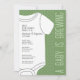 Ett roligt par duschtema - A Baby brinner! Den här inbjudan till babyduschen innehåller en söt baby t-shirt med gröntens bakgrund och modernt calligrafteckensnitt för de föräldrar som ska vara namn. Lägg till uppgifterna om Mamma som ska lämnas med party plus var det nya mor är registrerat för gåvor. Denna överdimensionerade garanti för baby innehåller all information om party. En enkel, polka punkt mönster är på baksidan.