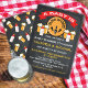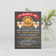 Toppen roligt om baby brinner, inbjudningar till babydusch med ölfat, baby flaskor och öl mot bakgrund av en krita. McBoobs illustration av hand plockade