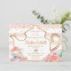 The invitation features tea pot outline with teacups and blush flowers. It's perfect for a girl baby shower tea party,