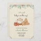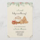 "A baby shower invitation with delicate floral and greenery motifs at the top. Features a cup of cocoa with candy canes and gingerbread cookies. 'A sweet baby is on the way! Join us for a Baby Shower Honoring [Name].' Soft, warm tones create an inviting atmosphere."