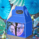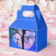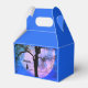 Fantastic full moon of purple hues and cobalt blue skies with a black cat on wire looking at it