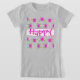 En liten flickas designer lycklig t-shirt grått med stark rosa. Lycklig-texten kan vara personlig till vilket meddelande eller namn som helst, eller text och banderoll kan tas bort.