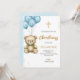 A christening Invitation features a teddy bear Inbjudningar