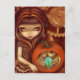En steampunk tar på sig en Jack-o-lantern - en Clockwork Pumpkin! Den här vackra flickan har skapat en mekanisk pumpa med ett örnblått/grönt ljus inuti. Fungerande växlar och låsbeslag i bakgrunden bidrar till steampunkflamman. Min egen ursprungliga akrylmålning.