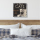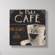 © Pela Studio / Vild Apple. En svart och vit bild av en kopp kaffe med en elegant designad såser. Ord i Fransk kan också visas på bilden.