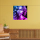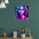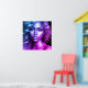 A young woman in red, blue and purple on a poster for your bedroom, living room or office walls.