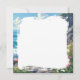 Ett vackert färgstarkt hjälpmedel som illustrerar en puffande blick över havet vågar vid havets strand omgiven av sten, dyner och blommor på ett blankt notecard.