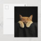 A Cute Sleepy Ginger Kitty Hanging Off the Bed Vykort