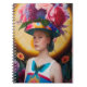A dam med blommigt sol hat anteckningsbok