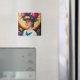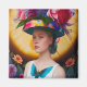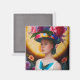 A dam med blommigt sol hat magnet