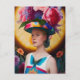 En bild av dam med blommigt sol hatt. Det här är en bild som skapas av AI med blommigtens temadesign.