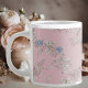 a delicate bouquet of wildflowers on a pink backgr jumbo mugg