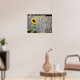 Njut av den roliga bilden av en fält av ljusa solrosor med gult och svart och vit bakgrund.