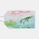 En grönt Frog hoppar in i dammen - Bok. Gräva grodtema. Den tysta vattendammen med blek rosa vatten lilies och grönt löv. En grönt Frog hoppar in i dammen. Stänk! Ljud i vatten.