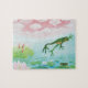 En grönt Frog hoppar in i dammen - Bok. Gräva grodtema. Den tysta vattendammen med blek rosa vatten lilies och grönt löv. En grönt Frog hoppar in i dammen. Stänk! Ljud i vatten.