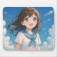 水色のセーラー服を着た笑顔の少女のイラスト。