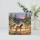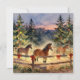 A sweet Christmas card with a watercolor illustration of a horse ranch decorated all festively. A sweet winter night in the country old[fashioned farm house Christmas farm.