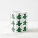 Roligt, viskigt Julgranar över en fin vit mugg.