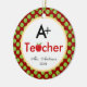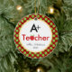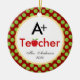 Denna julprydnad är en underbar gåva till den speciella läraren. Texten lyder: A+ Lärare.. accentuerad med ett rött äpple. Med anpassadet nära grund kan du lägga till lärarens namn och år.