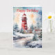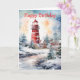 A red and white lighthouse in winter. Suitable for a birthday for anyone