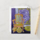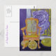Det här vykortet har en ursprunglig 18" by24"-oljemålning av Susan Payne-Trutna. Den här målningen inspirerades till återvinnan av en sedan länge bortglömd, halvmålad studie av citroner med en visning av en kvickt antik-/konsthantverk som jag nyligen upptäckte när jag gick på 7:e i Paris. En antikstol som målats i tangerinet och citron framför en överskalad lila ro-söt hindrade i hög grad denna fönstershoppare i hennes spår! Jag målade en stor del av miljön när jag kom ihåg den, men lämnade ut faux päls täckte skål och reptilerskuren golv. Jag tänka att jag vet när jag ska gå på bromsarna... jag ska bara låta din fantasi springa bort med den delen av scenen!