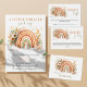 This design features a baby shower theme "A Little Miracle Is On The Way" with a hand-painted watercolour rainbow in soft terracotta, sage green, blush and warm neutral tones, this design blends Scandinavian minimalism with timeless boho charm. Flower, clouds and celestial accents. This product can be easily personalised with your personal event details.