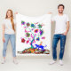 En livets träd och en tjej. Ett vibrerande träd brinner med färgstarka, fantastiskt formade blommor, omgivna av lush grey och en flod vid dess bas.