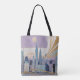 Dive into a dreamy urban landscape bathed in the soft glow of a full moon. This captivating artwork, rendered in ethereal pastel purple hues, presents an abstract interpretation of a cityscape, where familiar structures blend into a mesmerizing dance of light and shadow under the night sky. Perfect for adding a touch of serene mystery to any space.