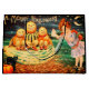 "En Merry Halloween." Vintage vykort, ca 1910. Flickan blåser ett horn med tre Jackar."