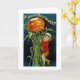 Vintage Halloween-hälsningskortillustration som visar ett barn under en viktoriansk tid som klättrar upp i en haystack med en Jack-o-Lantern överst. Anpassa hälsning eller lämna tomt.