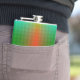 A metallic flask with a gradient green to yellow color, featuring a subtle pattern of small fleur-de-lis designs. The tone is vibrant and eye-catching.