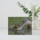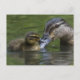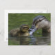 Ett ömtåligt ögonblick mellan ett mor anka och ett ankling på sjö.
