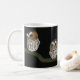 En charmerande utformning av uggla i mugg med fyra små ugglor med attityd.