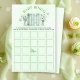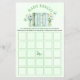 A New Chapter begins watercolor floral book gender neutral baby shower bingo game card. Celebrate the arrival of a baby with this charming book-themed shower design. Featuring a beautifully arranged row of books, delicate mason jars with flowers and green butterflies and a soft green watercolor background, it radiates literary charm. Perfect for book lovers, this exquisitely designed card is a treasured keepsake for this special occasion.