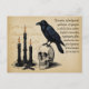This postcard resembles a page from an old book of magic spells, with text in an arcane language, and illustrations of black candles, a skull, and a raven. Nice, Gothic imagery, perfect for those who enjoy dark fantasy and magic.