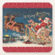 Julen underlägg med en färgstark, traditionell bild av Jultomten som flyger sin renborrade sömn vid jul Kväll. Med "God jul" på vackra guld-bokstäver.