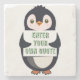 A penguin holding a sign with customizable text th stenunderlägg