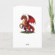 A proud, squat red dragon dominates the scene, all muscle and armor. Crimson scales deepen to maroon along its limbs, while ivory spines crown its back. Bright eyes and a toothy grin give this fearsome beast a bold, knowing charm.