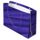 A purple gift bag with a wavy, abstract pattern and white handles is shown at an angle. The design is bold and modern, conveying a festive feel.