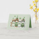 Det här charmerande hälsningskortet med sitt festliga tema för kattdjur är perfekt för att fira St. Patrick's Day. På kortets framsida visas fyra katter som är klädda festilt i gröntens svettare och hattar som är förslutna med schampar. Varje katt bär solglasögon och lägger till en lekfull och coola kattvib på scenen. Bakgrunden är en mjuk grönt som kompletterar katternas mörkare grönt inslag. Inuti fortsätter kortet temat med ett mörk grönt färg som kompletterar framsidan. Det inre budskapet lyder: "Irländskt du är en purfekt St. Cat-tricks-dag!" skapar det en härlig pun-fylld hälsning för kattälskare, de med irländskt arv och alla St. Patrick's Day-entusiast. Kortet är idealiskt för att skicka varmt önskemål och en liten bit humor till vänner och familj på detta festliga helgdag.