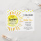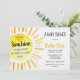 En Ray of Sunshine Baby Shower-inbjudanDenna moderna och färgstarka inbjudan är idealisk för att fira en Babyskuss med solsken, "Du är min solskina", "Min lilla solsken" eller "En liten stråle av solsken". Den har både en vattenfärg i sol och hör. Denna utformning är underbarare för vår eller sommar och hela året. Unisex-design. Färgstark och lekfull design som ett trendig mamma uppskattar.