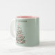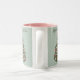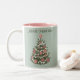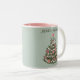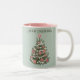 En Retro God jul Träd-kaffe Mugg. Ett vackert Julgran vatten med stil med röda, rosa, grönt och vita. Ljusvit helgdag strung mellan prydnadsämnena. En ljus röd stjärna på toppen gör att den här vackra träd skiner.