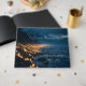 A sea of candlelights on the beach in the dark. Wonderful, custom Funeral Condolence Book. Colors in dark blue, black, yellow.