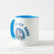 A mug with a cute illustration of a happy cheerful penguin sitting atop of a seal, with a blue rainbow and a text saying "Save Our Icy World" over them. This is a perfect present for people who care about our wonderful nature and beautiful planet.