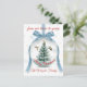 Celebrate the holiday season with this beautifully designed personalized Christmas Postcard, featuring a serene winter scene adorned with delicate hummingbirds and a snow-covered tree. The elegant blue ribbon and snowflake accents create a warm and inviting feel, perfect for sending heartfelt wishes from your family to theirs. Customize with your family name for a unique touch. Order today to add a festive touch. Pair with matching pieces.