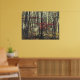 En besprutning av starkt rött gör att den mjuka och gråa höstskogen blir ljusare.